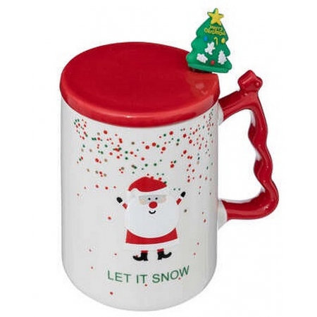 COFFRET MUG BLANC COUVERCLE ROUGE ET CUILLERE SAPIN