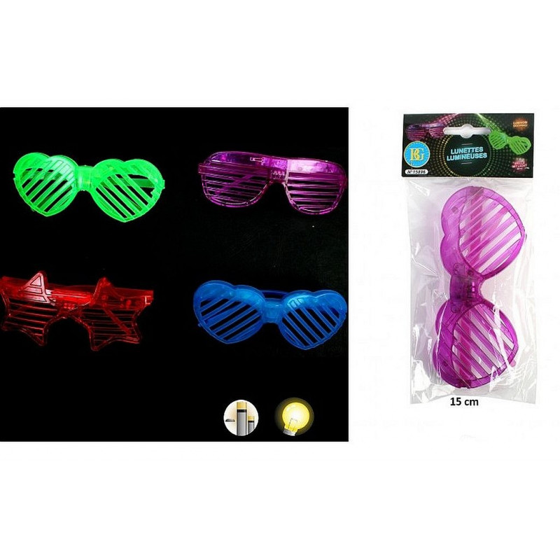 LUNETTE LUMINEUSE Dimension : 21*10 cm Piles incluses 3 modèles assortis 4 couleurs assorties