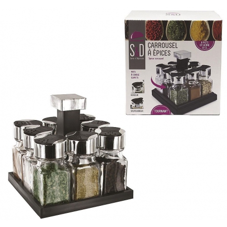 Ce carroussel à épices comprenant 8 pots en verre sera ultra pratique à table ou en cuisine! Remplissez-