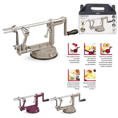 Pelez, évidez, tranchez et coupez vos pommes ou poires en quelques tours avec ce pèle-pomme au