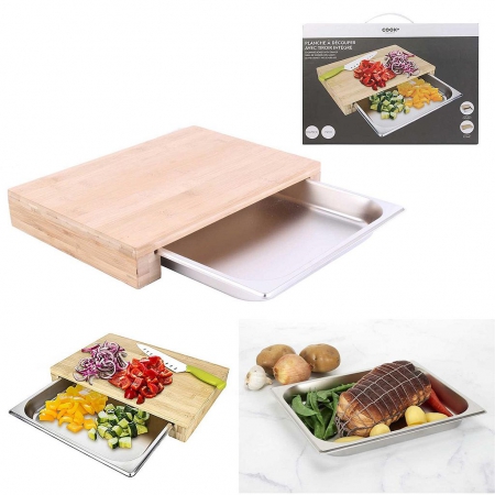 Facilitez-vous la vie en cuisine grâce à cette planche à découper avec tiroir intégré. Cette jolie planche en bambou sera indispensable pour vous accompagner au quotidien dans la découpe de vos aliments. Malin : râpez, tranchez et séparez vos aliments dans les tiroirs.