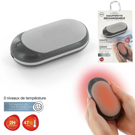 Cette chaufferette de poche électrique est idéale pour réchauffer les mains des plus frileux ! Glissez cette chaufferette de poche dans votre sac et activez-la en un branchement en cas de force majeur ! Vos mains recouvreront douceur et chaleur. Pratique, elle possède 3 puissances de chauffe ! - Câble inclus - Utilisation : 2h à 4h