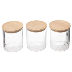 Set de 3 bocaux en verre HERMET de 350ml, avec couvercle hermétique en bois d'Hévéa certifié FSC.