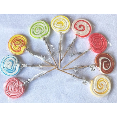 Sucette artisanale emballée individuellement, papier film type CPP40Y, baton sucette en bois de hêtre.