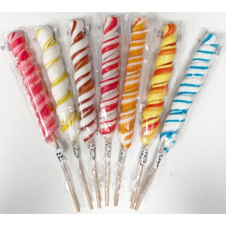 Sucette artisanale emballée individuellement, papier film type CPP40Y, baton sucette en bois de hêtre.