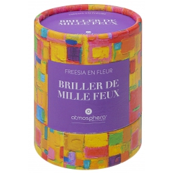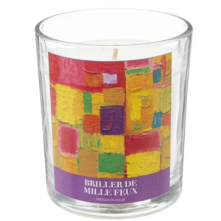 BOUGIE PARFUMEE JOMY FREESIA 200 GR Couleur: Blanc Description assortiments: Freesia en fleur "Briller de mille feux" Dimension produit: D. 8,8 x H. 11 cm Durée de combustion : 32 Heures