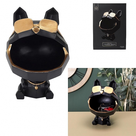 SCULPTURE BULLDOG LUNETTES NOIR 31 CM