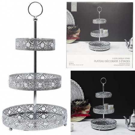 Présentez joliment et efficacement vos objets de décoration grâce à ce plateau argenté à 3 étages ! Vous apporterez une note orientale à votre intérieur