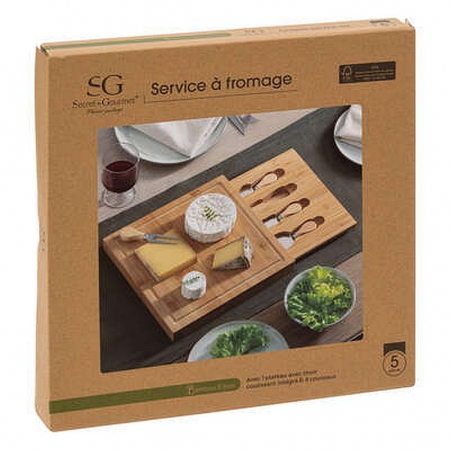 COFFRET FROMAGE BAMBOU 5 PIECES 30X30 CM Dimension produit: L. 30 x P. 30 x H. 3,6 cm