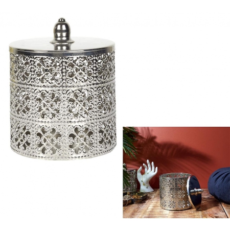 BOITE DECO ARGENTEE AVEC COUVERCLE H13.5 CM