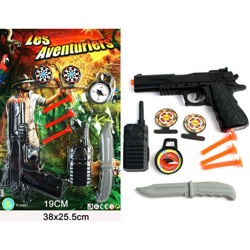 PISTOLET FLECHES AVENTURE 19CM + ACCESSOIRES
