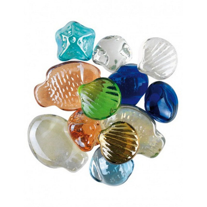 Sachet de 12 galets en verre de formes et de couleurs différentes.