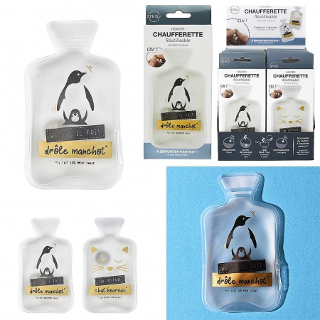 Glissez cette jolie chaufferette de poche dans votre sac et activez-la en un clic en cas de force majeur ! Vos mains recouvreront douceur et chaleur. Pratique, emportez-la où vous voulez et réutilisez la a l'infini ! Vous craquerez pour son design animal trop mignon et sa transparence !