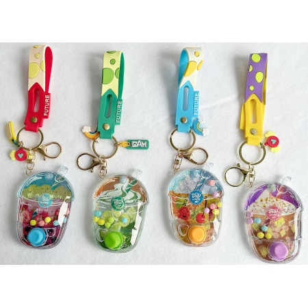 PORTE CLE JEU A EAU BUBBLE TEA 8.5*5.5 CM 4 couleurs assorties