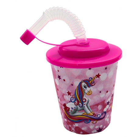 VERRE GOBELET LICORNE 9 CM 250ML 3D AVEC PAILLE