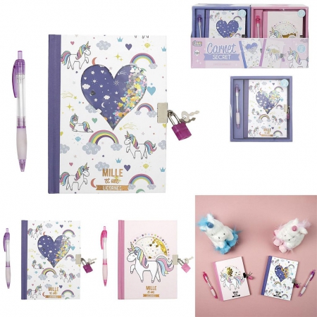 COFFRET CARNET SECRET LICORNE ET STYLO Format du produit : 17.90 x 15.50 cm 2 couleurs
