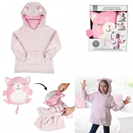SWEAT A CAPUCHE ENFANT CHAT ROSE Fun et ultra-confortable. ce sweat à manche et capuche fera le bonheur des frileux. passez l'hiver en mode cocooning ! Format du produit : 66 x 2 x 53 cm