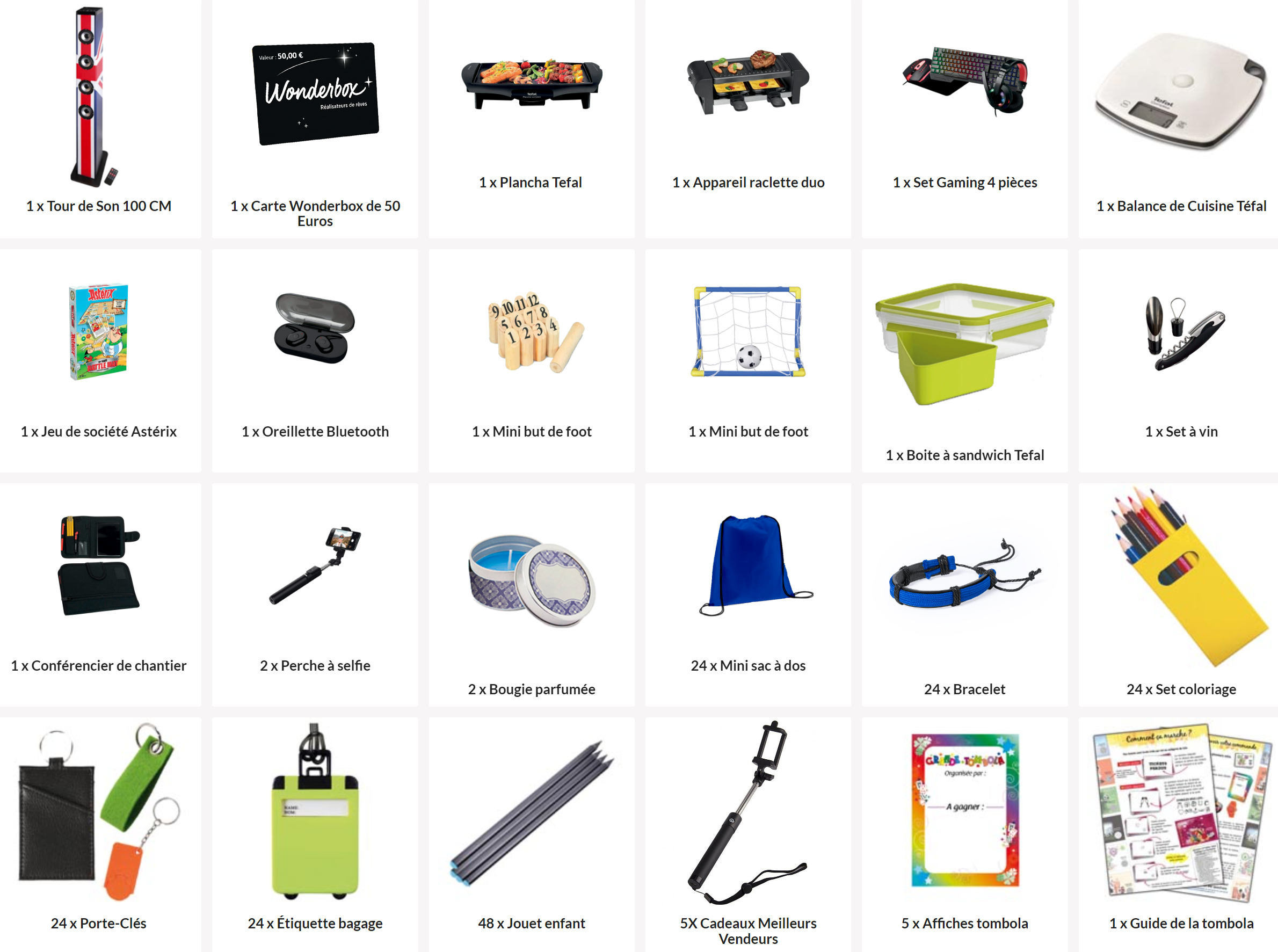 0 MINUTE DE PERDU : Tout est prêt. Nous vous fournissons les tickets personnalisés avec votre texte plus tous les lots. Vous trouverez également dans votre colis (expédié sous 3 jours par un transporteur spécialisé) : des cadeaux meilleurs vendeurs, des affiches et un livret conseil. Ainsi vos bénévoles gagnent du temps pour se consacrer à la bonne gestion de votre club.