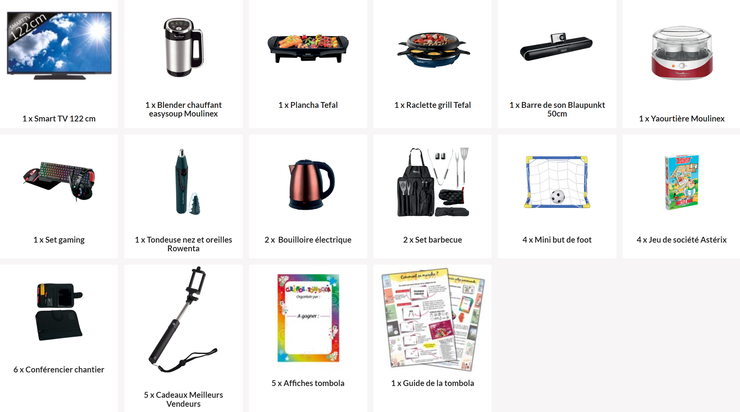 0 MINUTE DE PERDU : Tout est prêt. Nous vous fournissons les tickets personnalisés avec votre texte plus tous les lots. Vous trouverez également dans votre colis (expédié sous 3 jours par un transporteur spécialisé) : des cadeaux meilleurs vendeurs, des affiches et un livret conseil. Ainsi vos bénévoles gagnent du temps pour se consacrer à la bonne gestion de votre club.