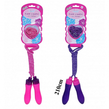 ELASTIQUE/CORDE A SAUTER Caractéristiques produit: - Dès 5 ans - Coloris: Violet / Rose - 2 Assortis - Longueur: 210cm - Dimension carte de présentation: 9*17cm - Matière: Plastique - Normes CE