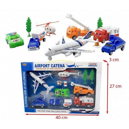 COFFRET AVION ET VEHICULES AEROPORT Coffret comprenant un avion et 7 véhicules Dimension : 40*27 cm