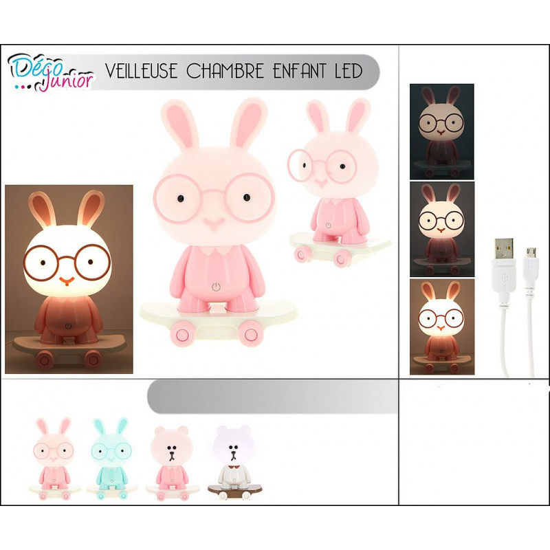 VEILLEUSE FORME OURS ET LAPIN SUR SKATE
